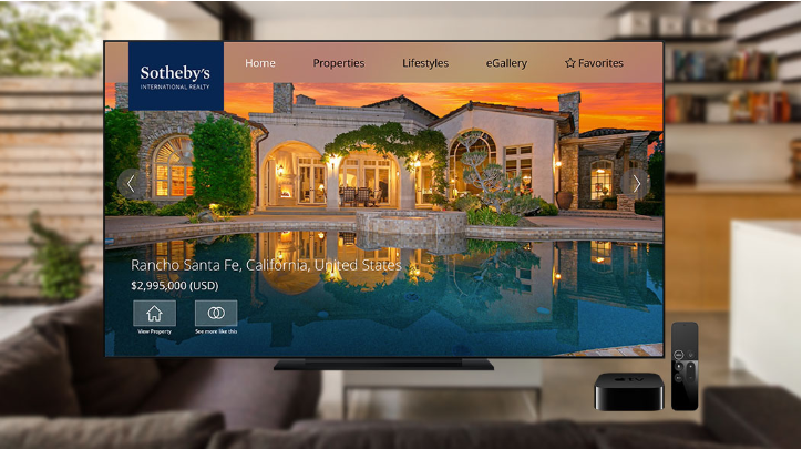 Homes represented by Sotheby’s International Realty are searchable on the only real estate app on Apple TV that ensures an impeccable visual experience while exploring the world’s most extraordinary properties. Discover how your home will be viewed globally on Apple TV by searching "Realty" or "Sotheby's International Realty" on the Apple TV App Store.