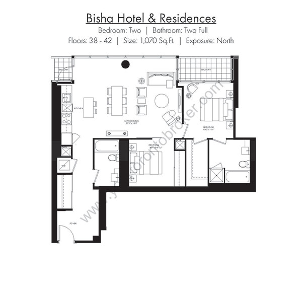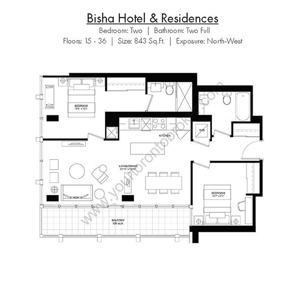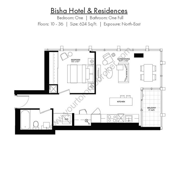 This high-rise Toronto condo is located at 88 Blue Jays Way in Downtown's King West neighbourhood and has 355 condo units spanning 44 floors, with suites ranging from 379 to 2554 square feet. Bisha Hotel and Residences’ amenities include a Concierge, Gym & Exercise Room, and Pool.