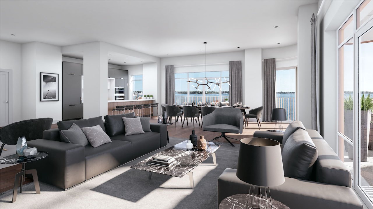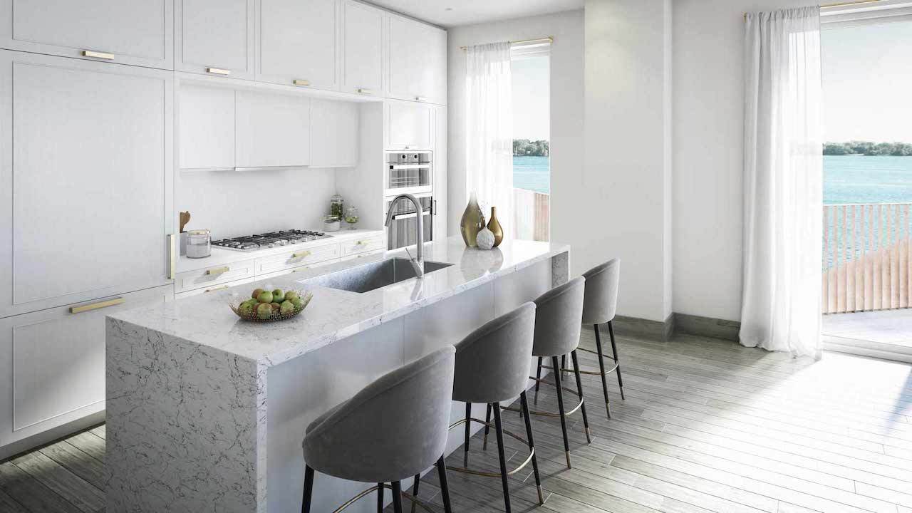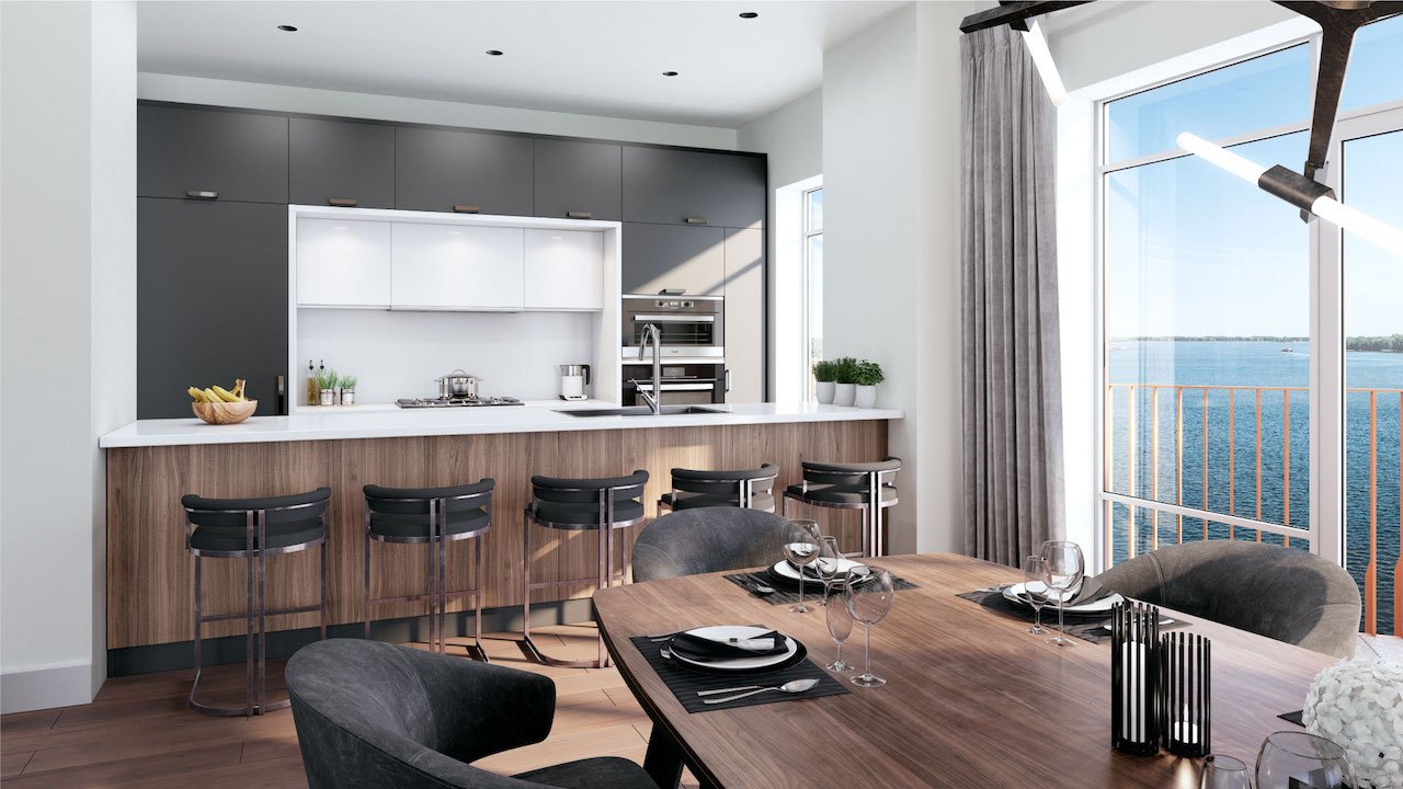 Danish architect 3XN is the design team tasked to create this final phase of the Bayside community. The striking design of Aqualuna at Bayside condos mimics the flowing form a wave by dipping in the middle of two residential peaks with each unit given a cascading private balcony. Most condo suites feature private oversized balconies or large terraces with unobstructed views of the water. It’s no wonder Aqualuna is one of Toronto’s most desirable condo addresses.