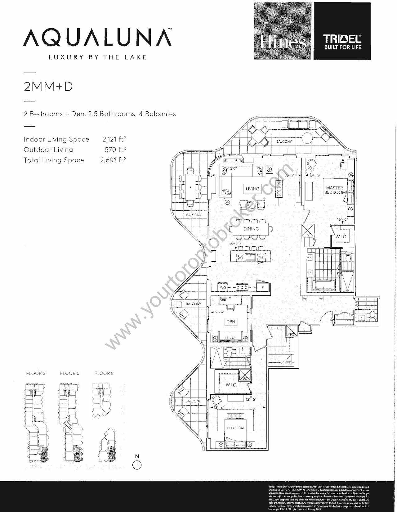 Aqualuna is the fourth and final building addition to the south side of Queens Quay, just east of Aquabella, Aquavista and Aqualina Condos. Suite sizes range from 821 square feet to 4, 622 square feet with a wide variety of layouts to choose from. Condo layouts include 2-bedroom, 2-bedroom+den, 3-bedroom, Penthouse, Grand Penthouse, and Sky Penthouse.